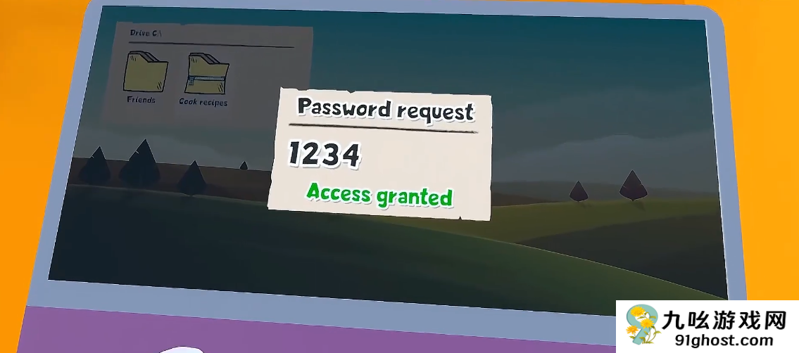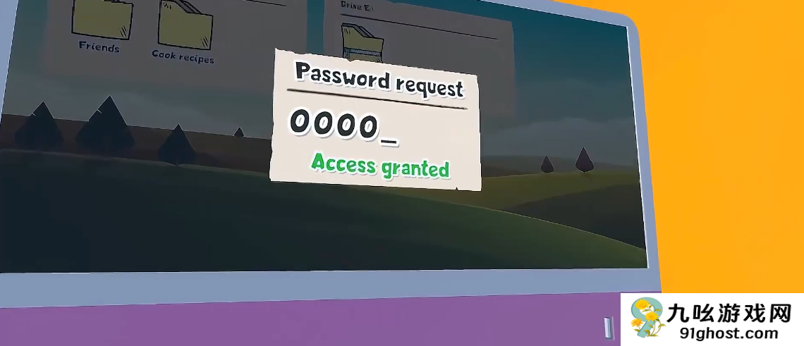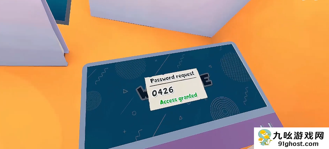 1、在墙上书架的后面写着电脑的开机密码0426,打开电脑第二个文件夹的密码是1234