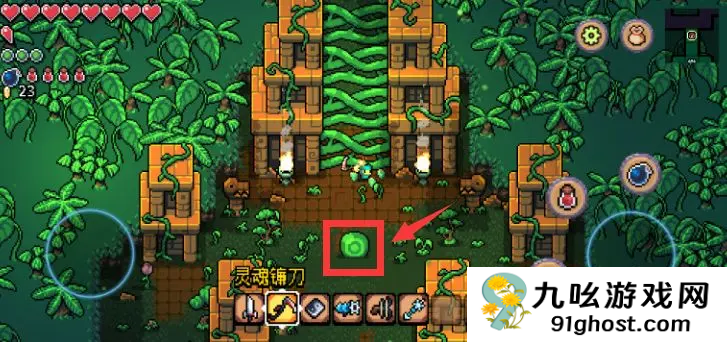 阿彻威尔奇妙冒险中解锁缠结果园需要攻击面前的这颗绿色的小球,攻击小球并打爆它之后藤蔓就会消失,然后就可以前往缠结果园了。