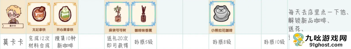 4、莫卡卡:太妃拿铁、麻袋可可树、开心果拿铁、咖啡味香薰、小熊拉花咖啡;
