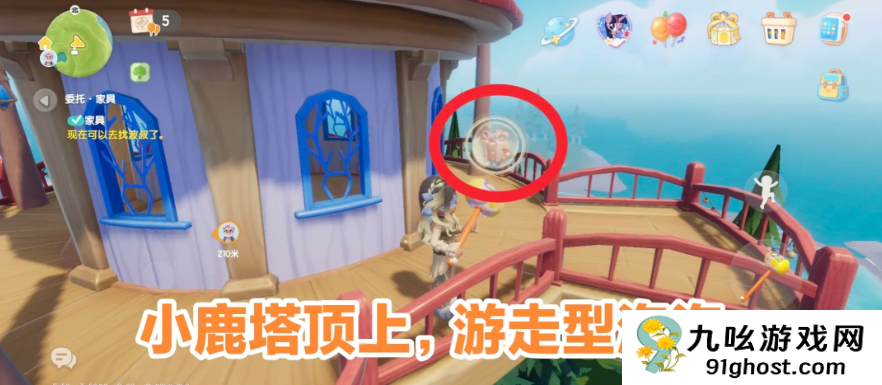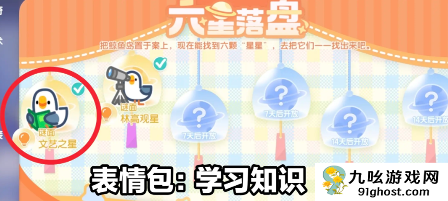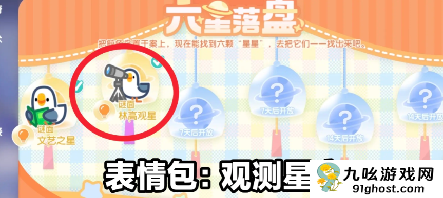 心动小镇六星落盘中可以获得两个表情包,需要根据对应的表情包米面来到对应的位置找到泡泡,文艺之星的位置在文艺街道路的左边,林高观星在小鹿塔顶上,在这些对应的位置找到泡泡即可。