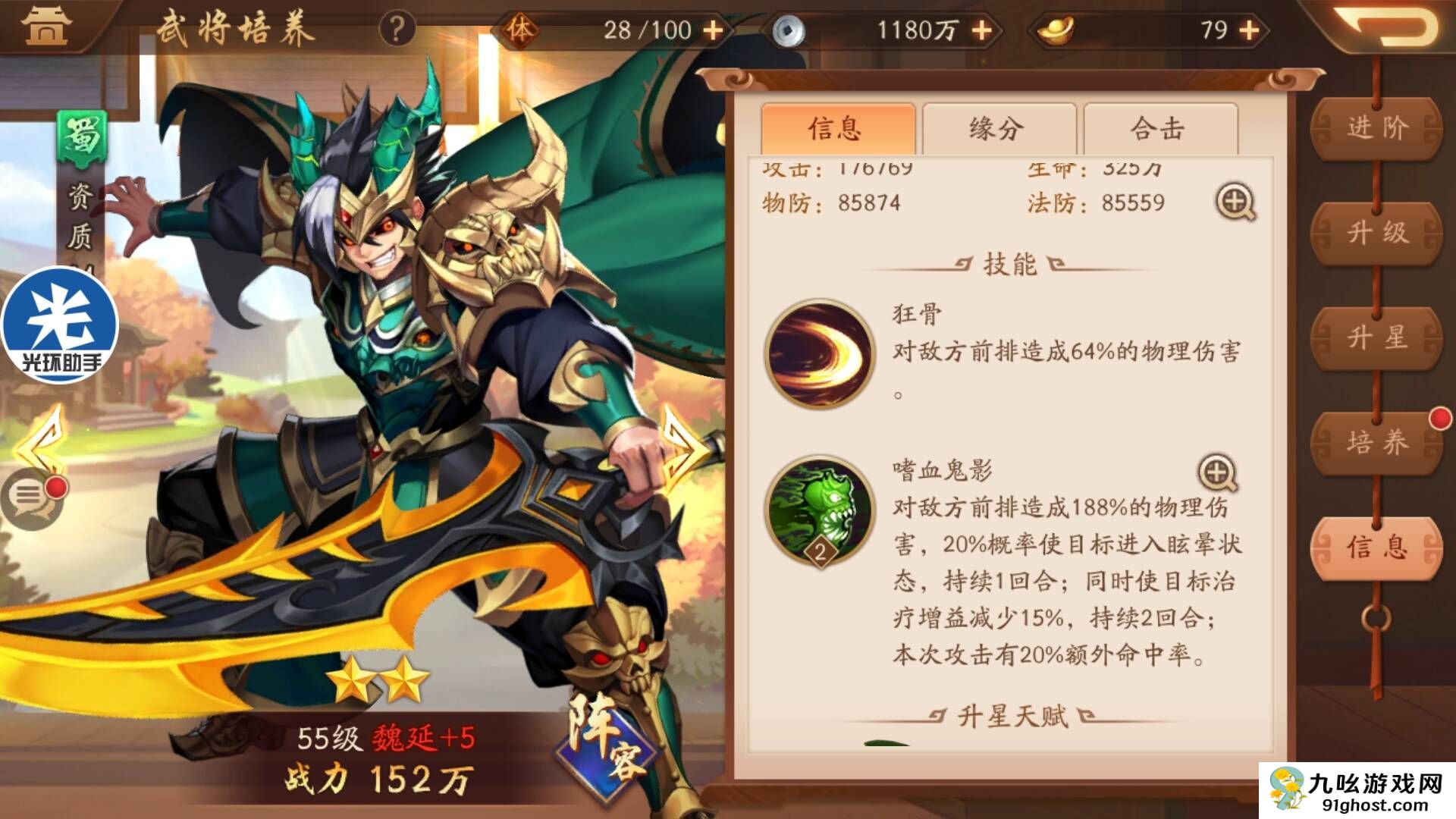 义绝是关羽的单体爆发技能,能对目标造成百分比生命值的额外伤害,特别适合秒杀敌方核心武将。如果成功击杀目标,技能冷却会立刻重置,让关羽在残局中拥有极强的连续作战能力。这个技能的设计体现了关羽一击必杀的战斗风格,同时也需要玩家精准把握释放时机。