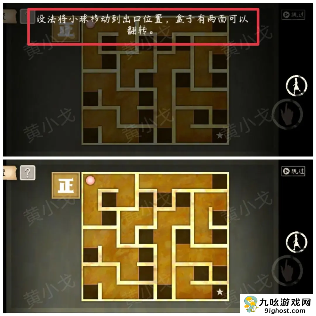 设法将小球移动到出口位置,盒子有两面可以翻转。