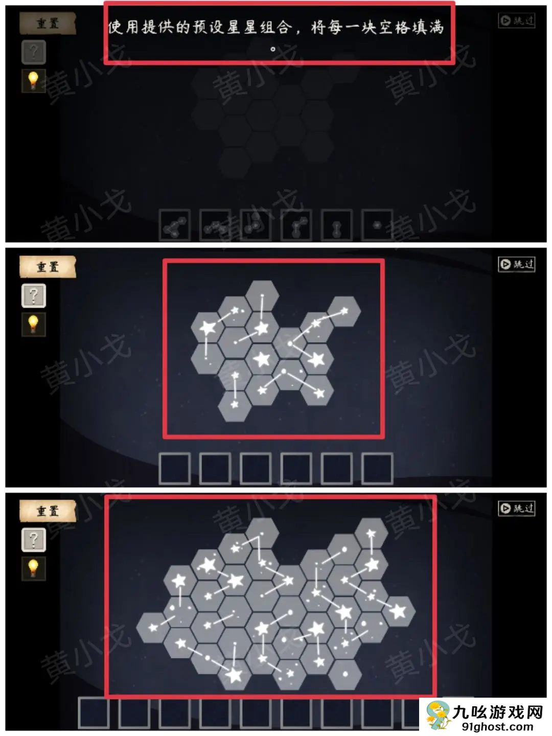 使用提供的预设星星组合,将每一块空格填满。