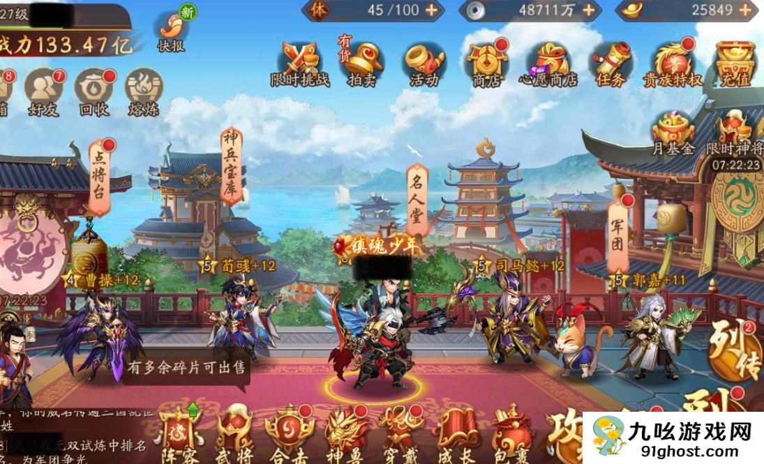 养成资源应集中投入张辽与主副将,工具人副将仅需提升等级与基础装备。张郃需重点强化闪避属性,夏侯渊侧重命中与暴击,甄姬和郭嘉则优先生存类丹药。紫金品质副将需激活五子良将羁绊提升全队速度,通过协战位弥补张辽对群攻的弱势。