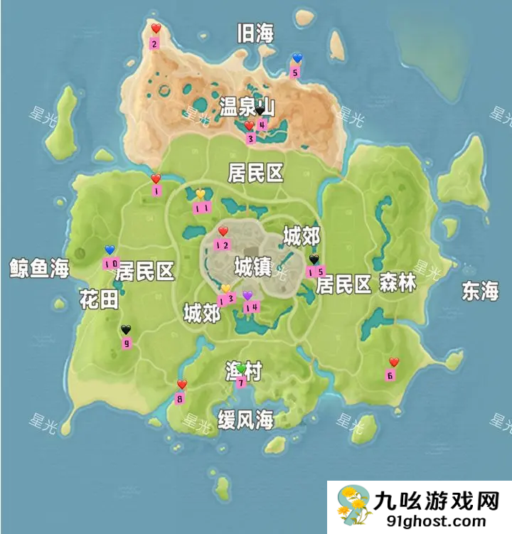 心动小镇8月23日至8月29日的粉红泡泡位置分别在温泉山5处、森林1处 、渔村1处、花田3处、镇中5处。 粉红泡泡里有随机送拼图盒子和家具,满愿星,材料,下面为大家列举这些粉红泡泡的位置详情内容!