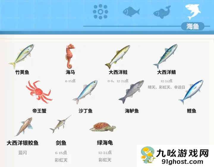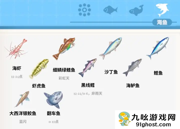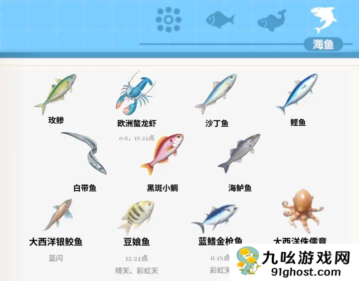 心动小镇各海域分布的鱼类都有哪些