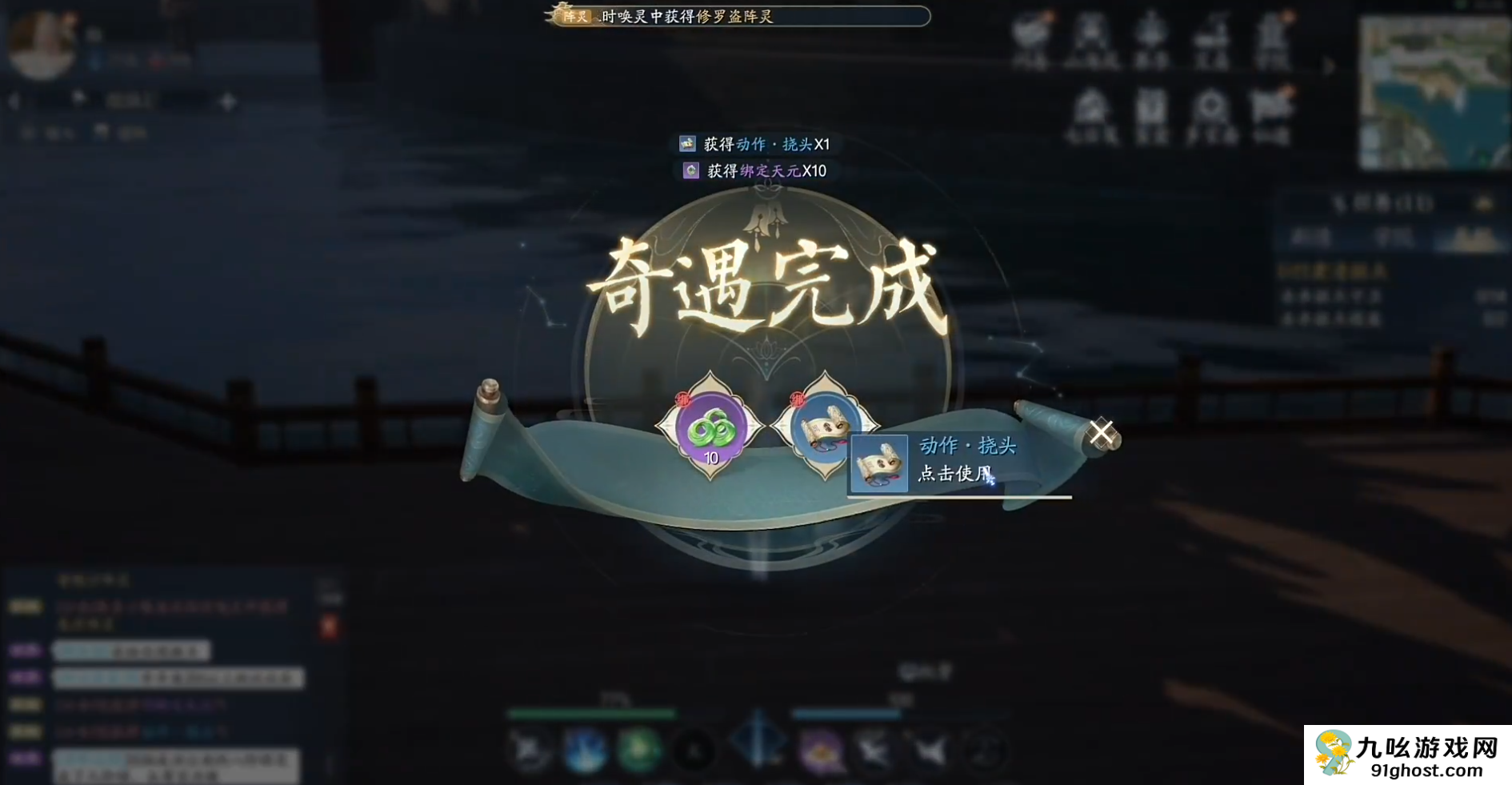 5、最后即可完成奇遇并获得奖励10绑定天元和动作·挠头