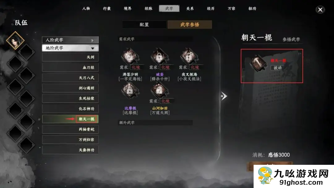 4、最后完成获即可获得参悟武学 朝天一棍