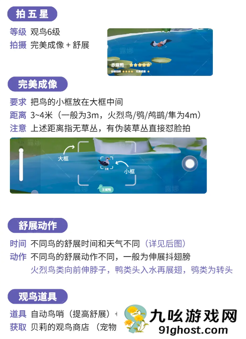 ② 距离:3~4米(一般3m,火烈鸟/鸮/鸬鹚/隼4m)