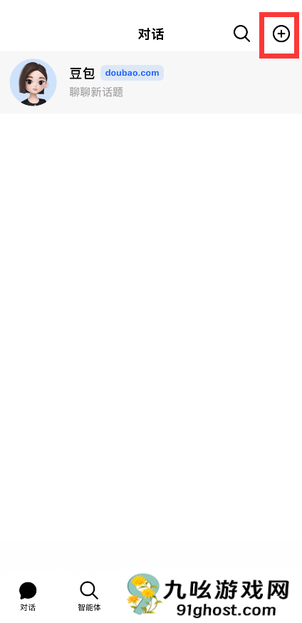 1、在【对话】主页面点击右上角的+号;