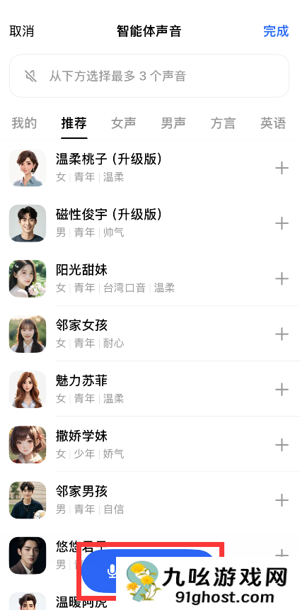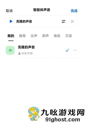6、最后在AI智能体声音界面勾选自己的声音后就可以使用了;
