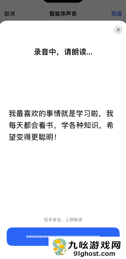 5、然后长按并朗读这段文字内容;