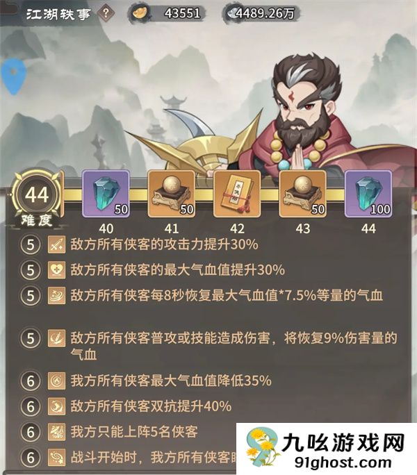 每轮江湖轶事包含8个连续关卡,战斗过程中气血消耗会持续累积。强烈建议配置双防型坦克角色,防止被秒杀风险;同时搭配双龙女辅助,提升团队生存能力。主C输出优先安排在后排位置,避免近战单位过早倒下。策略上,若追求速刷效率,可跳过最后两关仅拿32分直接激活奖励轮次;但如果战力不足,推荐全选最高难度44分通关,确保收益最大化。