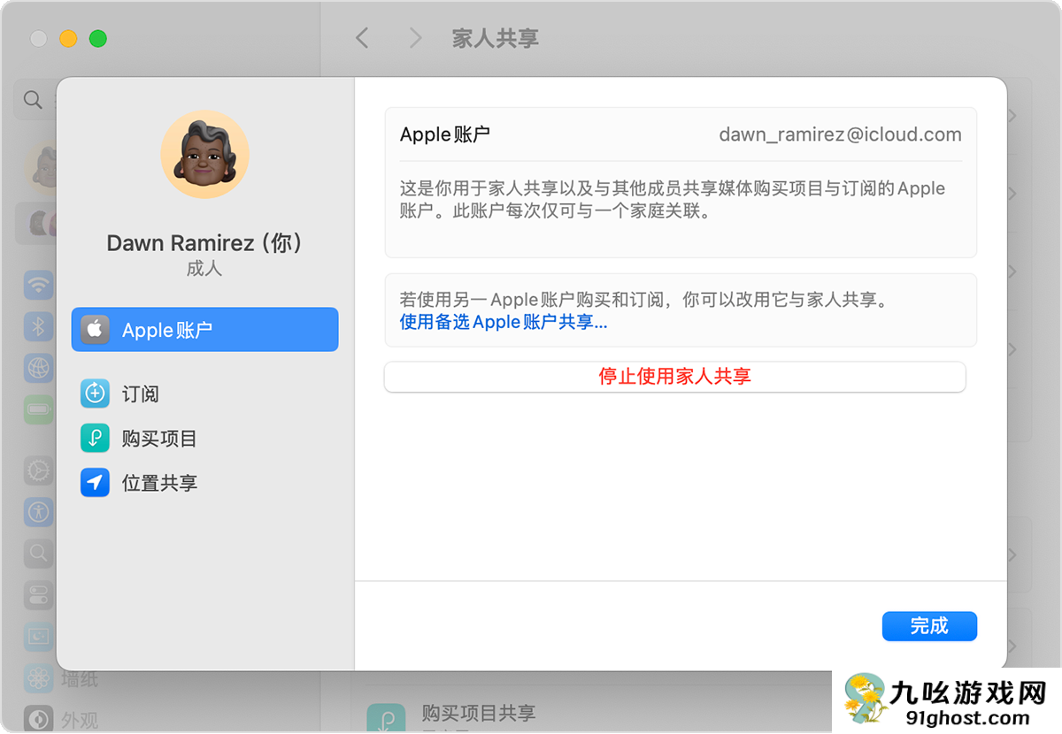 ④ 退出家人共享后,你将无法再访问家人共享群组共享的任何购买项目或服务;