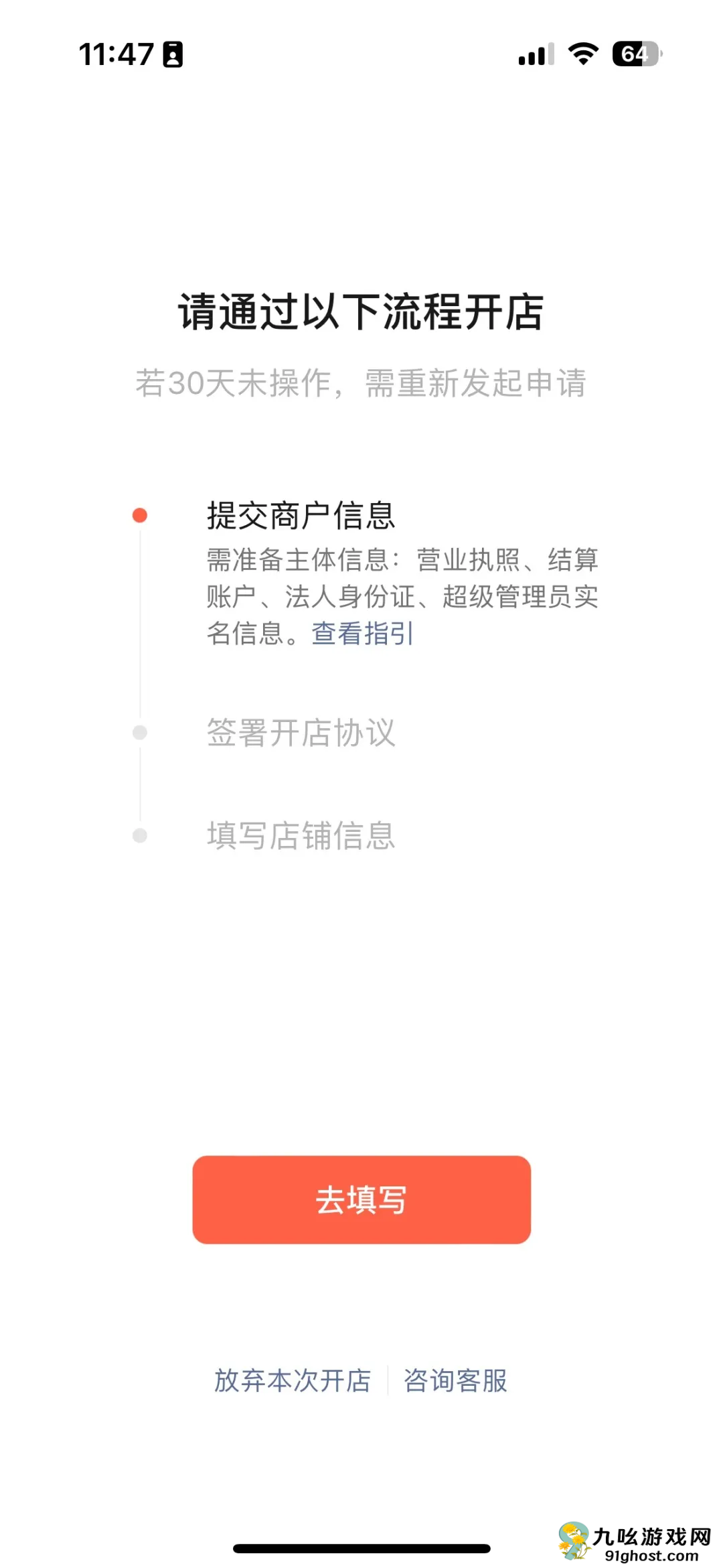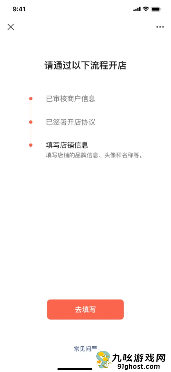 (1)成功「提交商户信息」和「签署开店协议」后,点击「去填写」即可进入提交店铺信息界面。