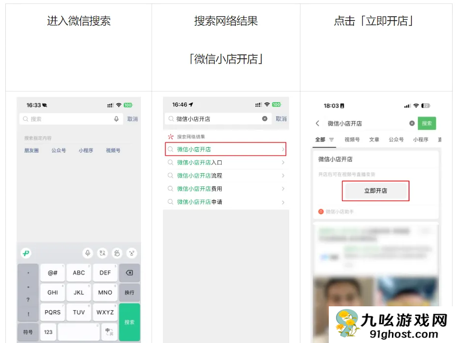 1、申请开店:进入微信搜索 > 搜索「微信小店开店」 > 点击「立即开店」