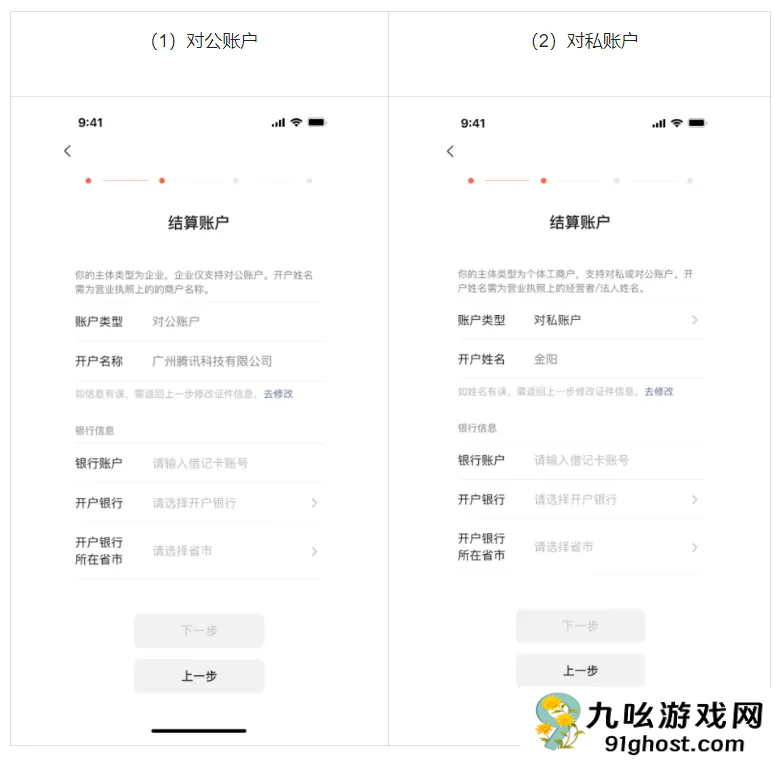 (2)选择对私账户时,开户名称必须与营业执照上的“经营者”信息一致。