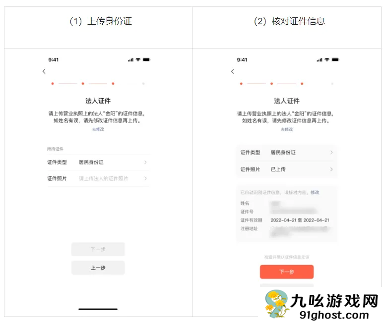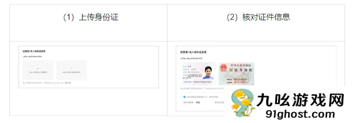 (1)上传营业执照经营者/法定代表人身份证正反面。如经营者/法定代表人为外籍或中国港澳台人员,也应按照指引上传对应证件进行验证。