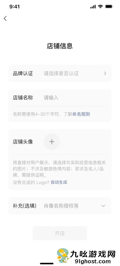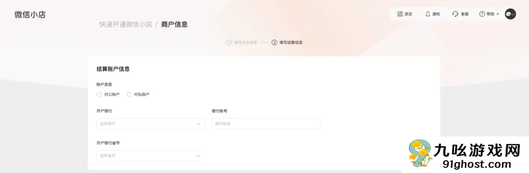 了解《微信小店入驻规则》,填写对应店铺类型所需的店铺名称、头像等信息。