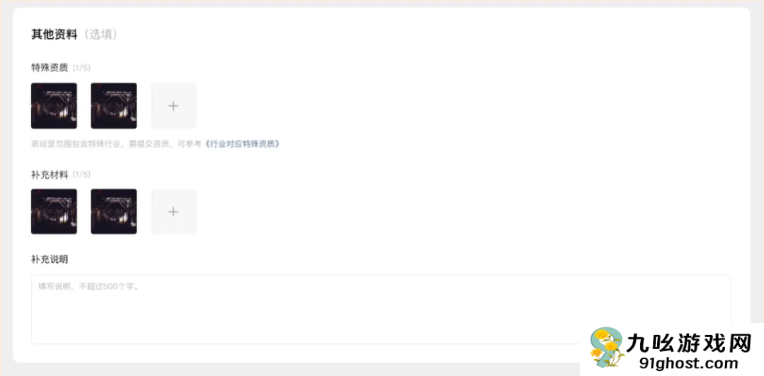 (4)如有「特殊行业资质」可以进行补充填写。
