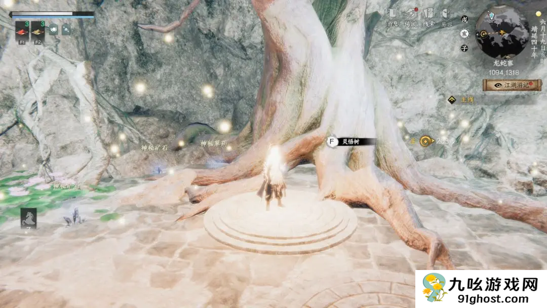 3、进去后来到右边1094,1318交互灵悟树获得精级护体绝技六合随风