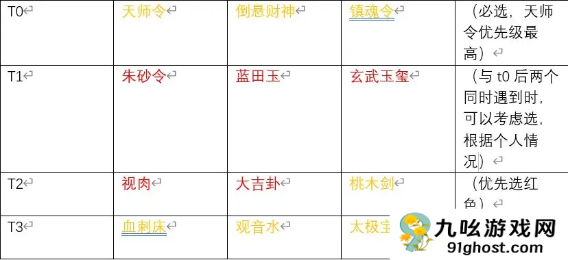 二、强度梯度全评测T0神级组:天师令必选!符咒合成体系的核心命脉,手牌扩展直接决定战术上限。搭配镇魂铃形成质变 combo,后期强度爆炸。倒悬财神则是资源积累的战略核心,铜钱永远不嫌多。T1首选组:朱砂令大幅提升清怪效率,前期开荒利器;蓝田玉稳定增伤机制,十波左右即可叠满增益;玄武玉玺解决BOSS战爆发短板,橙符连发不再是梦;血刺床前期符咒补给神器,帮助平稳渡过发育期。T2备选组:桃木剑等常规装备,效果中规中矩缺乏亮点。T3/T4慎选组:防御向天材整体弱势。在符咒、傀儡、天书三体系都围绕输出的环境下,纯防御属性收益远低于攻击加成。更何况关卡怪物伤害溢出,单靠防御难以破局。※版本调整:观音水惨遭削弱跌至T4,当前版本已成鸡肋选择。