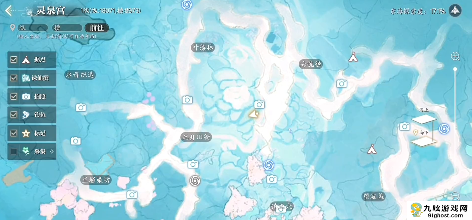 1、来到海下灵泉宫位置坐标的18022 8982 10781