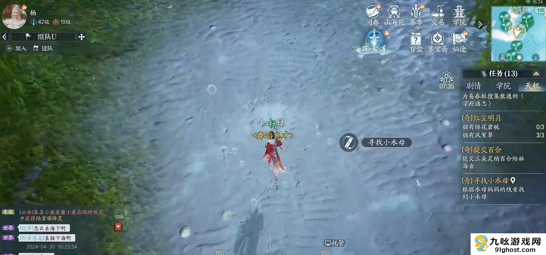 2、在坐标处的沉船里和水母对话即可激活奇遇