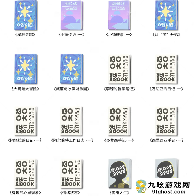 目前的书籍为:《秘林寻踪》、《小镇传说·一》、《小镇轶事·一》、《从“灵”开始》、《大嘴蛙大冒险》、《威廉与冰淇淋乐园》、《李臻的哲学笔记》、《万尼亚的日记·一》、《阿塔拉的日记·一》、《阿尔伯特工作日志·一》、《多萝西手记·一》、《西里西亚手记·一》、《有趣的心里现象》、《情绪状态》、《传奇人生》、《康纳语录精选》