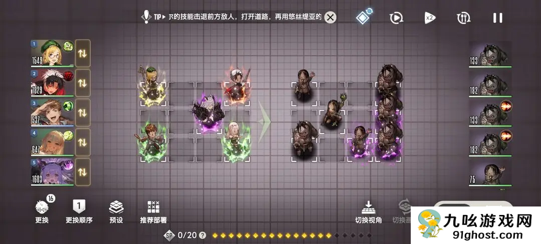 三、终局之战:第十二章诺克斯攻略使徒诺克斯(暗属)最低配阵容前10回合仅前三角色行动,其余普攻(含召唤物)。10回合后鲁释放大招,SP不足时全员普攻,伤害欠缺则分批送战,多轮磨血制胜。