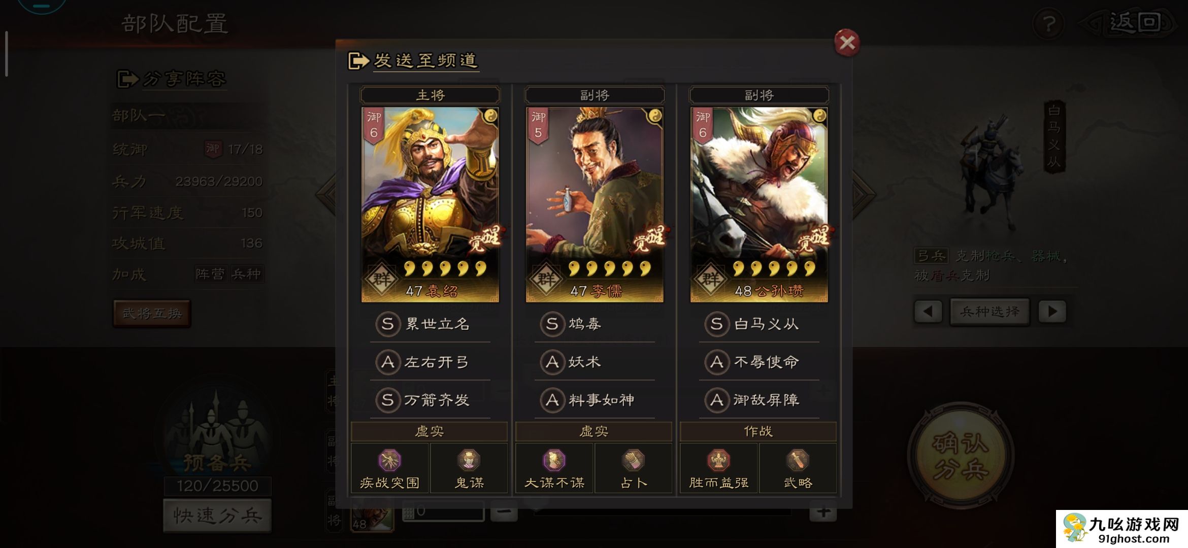 掌握自我配将的核心在于理解武将属性与战法机制的联动。首先需要关注武将的四维属性(武力、统率、智力、速度),这些直接决定了他们的定位和成长空间。比如武力型武将适合携带兵刃伤害战法,而智力型武将更适合谋略输出或辅助。兵种适性也至关重要,S级适性提升120%属性,A级为100%,优先选择3S阵容或至少主C为S级的组合。同阵营武将能激活10%属性加成,国家队搭配往往更稳定。