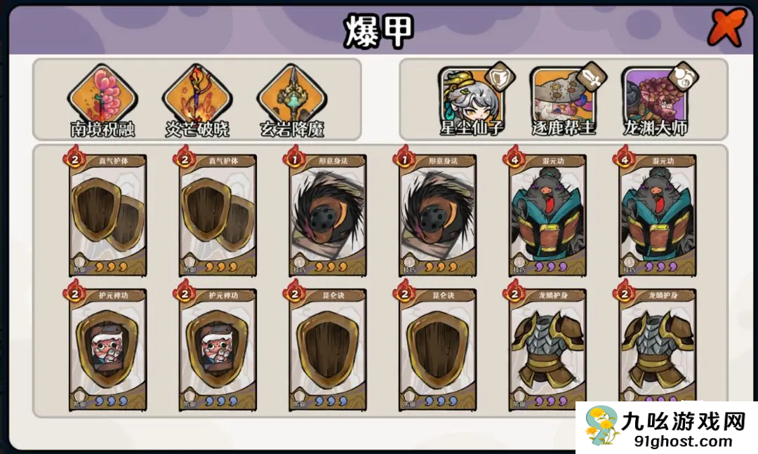 2. 翻倍护甲阶段:星辰武学使帮主护甲倍增,回气并发现星辰武侠卡,重复操作直至护甲叠满。
