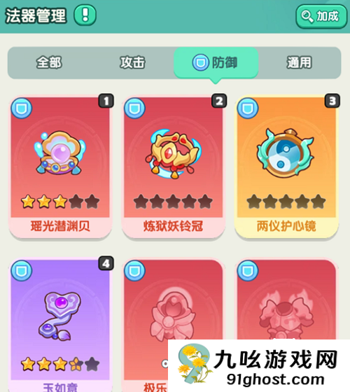 三大法器类型解析法器体系主要划分为进攻型、防护型和全能型三大类别。目前防御与通用类法器选择丰富,攻击型相对稀缺。