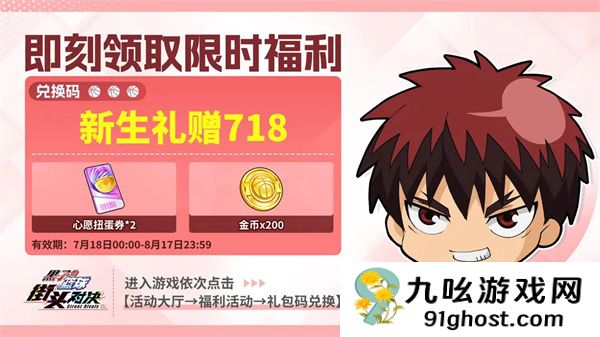 礼包名称:新生礼赠718奖励内容:心愿扭蛋券×2 + 金币×200有效期:8月17日23:59前
