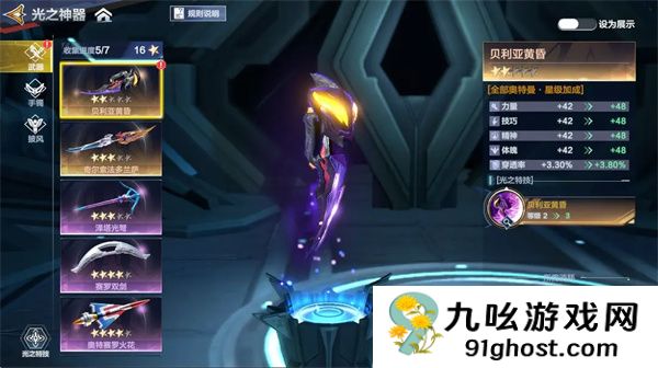 贝利亚黄昏(昵称贝贝剑)作为顶级输出神器,不仅带来高额全属性加成,其主动技能在达到2星时更能触发27%伤害增幅效果,持续12秒,大幅强化进攻能力。