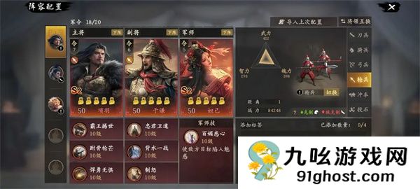 于谦的被动技可根据战况调整为制怒增益,其持续作战特性也让深谋远虑天赋得以充分发挥。主将优先选择项羽,若未获取可用苏定方或庞统替代(需调整技能:如将冲阵改为撞阵冲军,庞统则适配其他谋略型技能)。