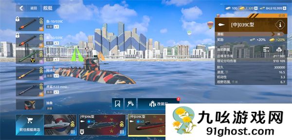 核心性能解析039C是目前游戏中唯一配备五个鱼雷槽位的潜艇,包括两个固定槽和三个自由槽。固定槽装备鱼10鱼雷,冷却快、伤害高,拥有出色的AOE效果和免疫诱饵特性,这对反潜作战至关重要。