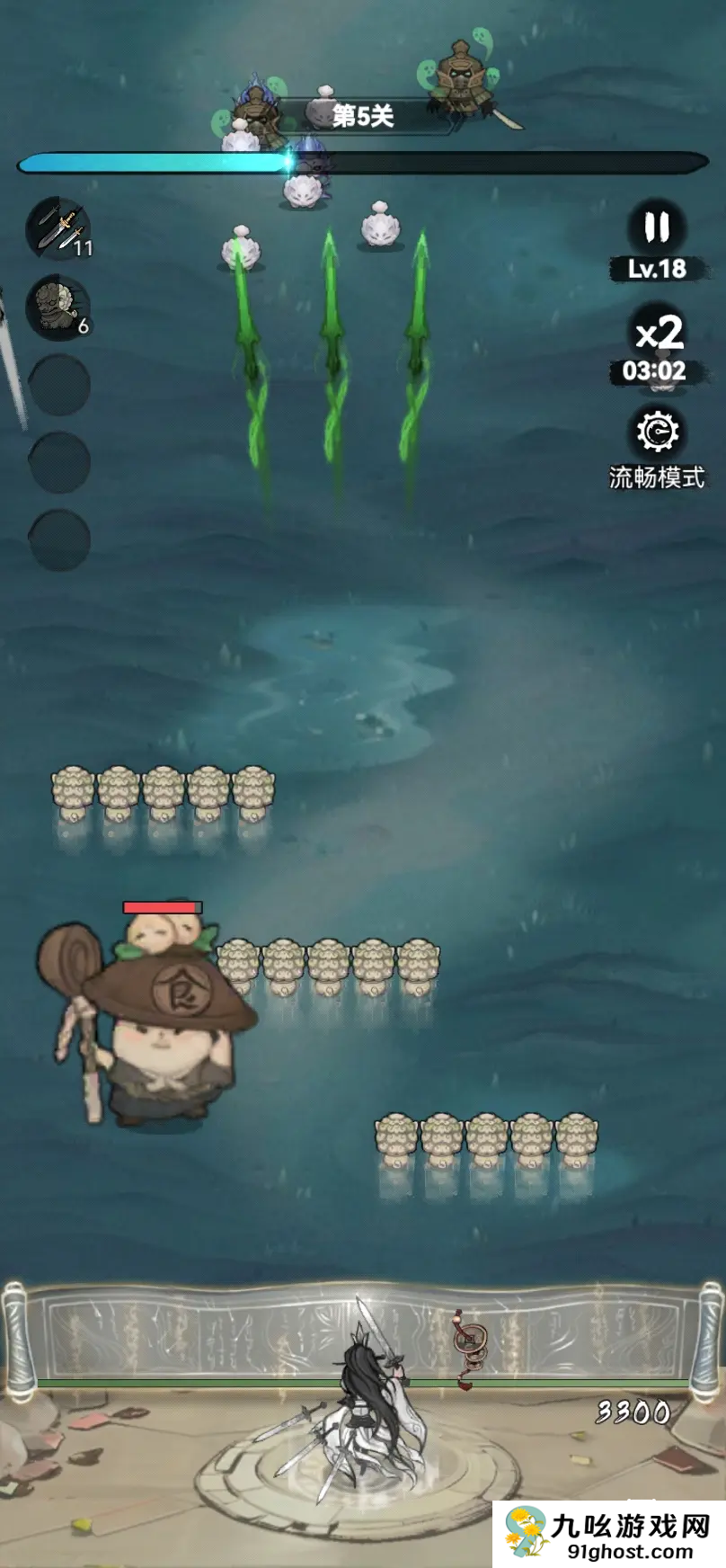 第九关:石阵压制回归万剑归宗主升路线,石狮子需点亮双重召唤特性。通过石阵分割战场,配合剑气的穿透效果实施区域压制战术。