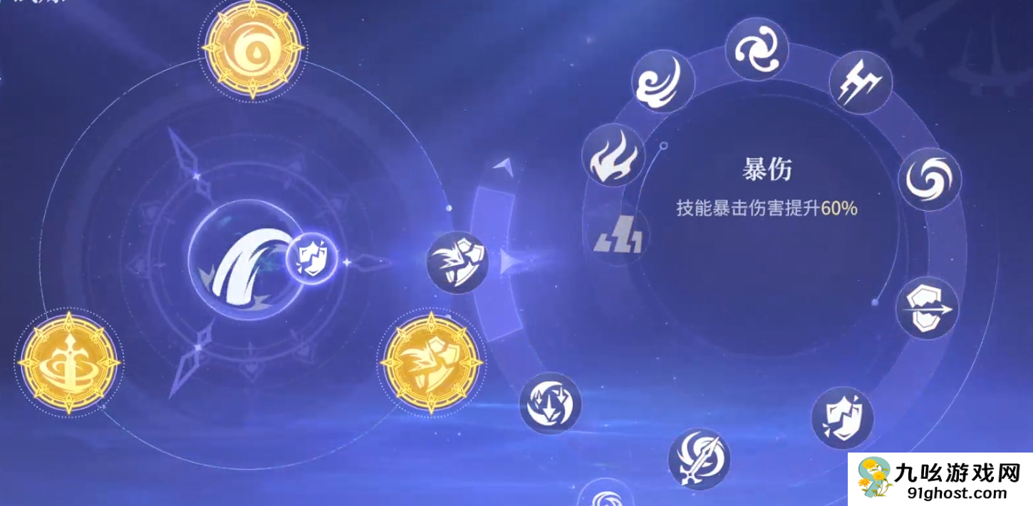 四环配置:特性选用暴伤,魂印组合为攻袭、聚伤、穿透或元素。